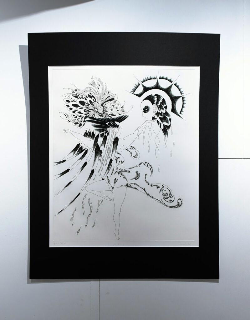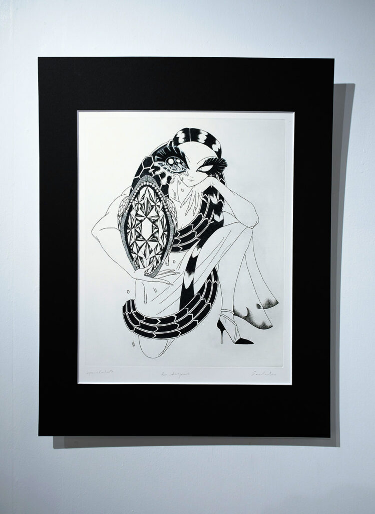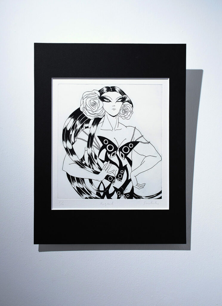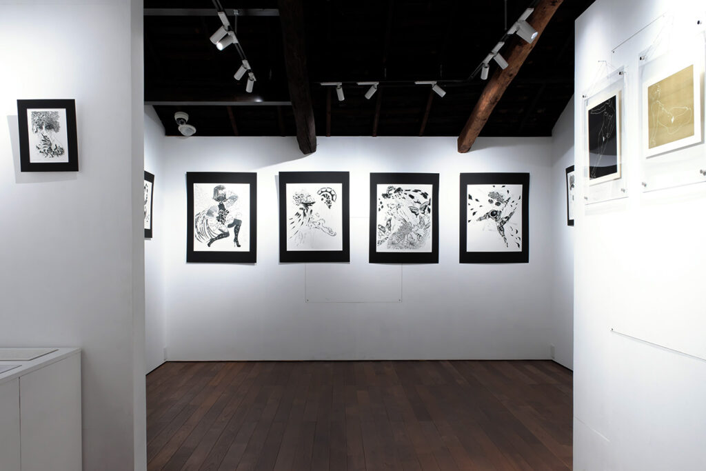 展覧会について:今回の展示作家である二宮さんは、銅版画の技術を使い、ジェンダー、フェミニズムに対する関心をテーマとした作品を展開しています。今回は、プッチーニの有名なオペラ「蝶々夫人」を題材にした表題作をはじめ、十数点を展示します。少女漫画に影響を受けた表現の技術面だけではなく、作品のコンセプトに注目しながら作品をみて頂けますと幸いです。